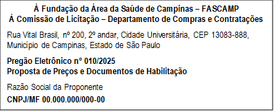 *Obs: Os modelos encontram-se disponíveis gratuitamente para consulta e retirada na página da FASCAMP www.fascamp.org.br/aquisicoes-e-contratacoes